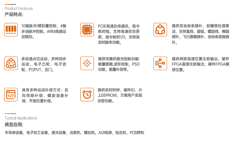 GCS-PCIE系列多轴运动控制卡可应用于3C设备,半导体设备,激光加工设备,检测设备,包装机械,木工机械等要求高速、高精度运动控制的设备。
